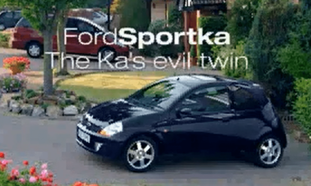 Ford SportKA Werbeclip aus 2004— Der will nur spielen!   Oder auf Englisch „Ford SportKA, tha KAs evil Twin“ (Der Ford SportKA, der KAs böse Zwilling). Und ja, diese Werbung ist tatsächlich echt! Laut Ford GB wurden allerdings keine Tiere verletzt.